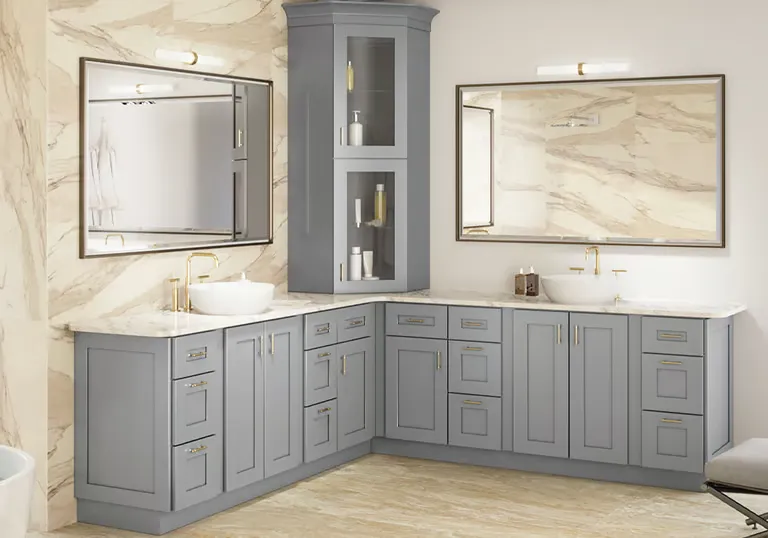 Modern custom bathroom vanities that blend elegance with practical storage.